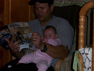 We had a good weekend. Carmen is doing well. Little turkey got up this morning at 5:15, which is quite early for her. I got up & fed her, put her back in bed & turned out the lights. I think she was confused at first. She got to bed late (8 pm) last night, so I didn't want to deprive her (or me) of valuable rest. She slept until 8 am! She has had some congestion & a cough but is better today. She still acts fine - plays, smiles, talks, etc. - so we haven't been too concerned.